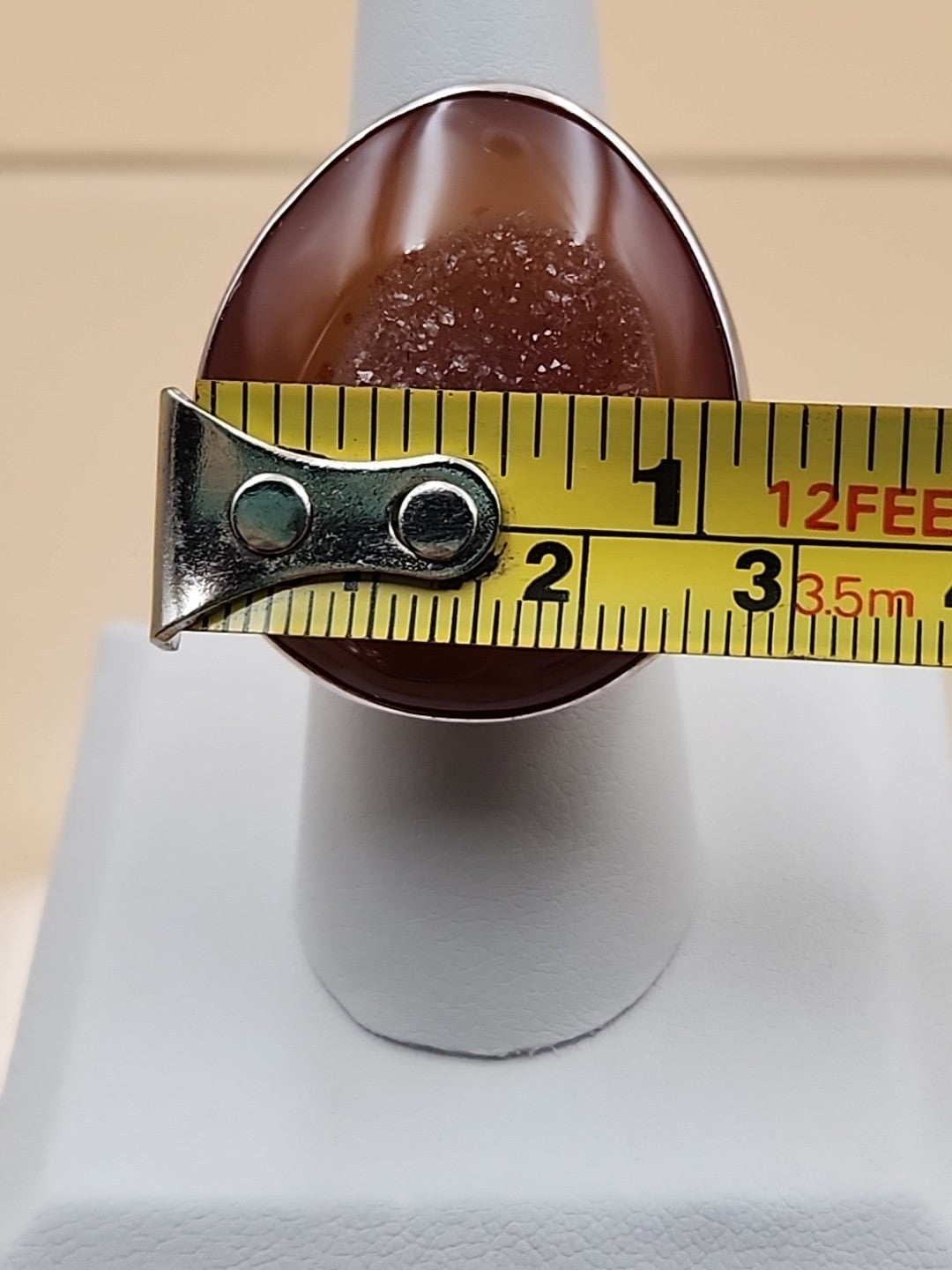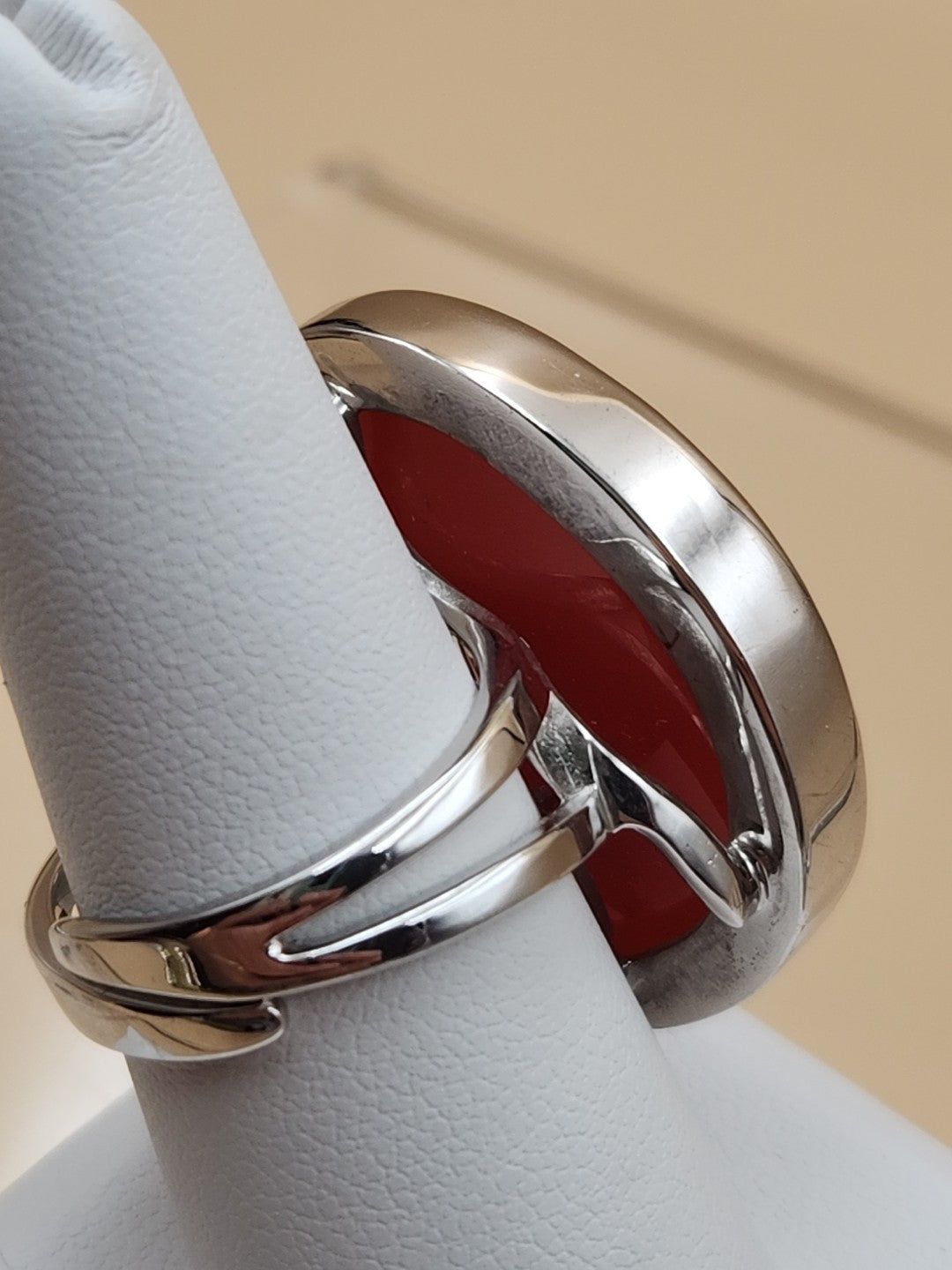 Sterling Silver/Druzy Orange Agate Cabochon/Polished Adjustable Ring Size 7.75 +