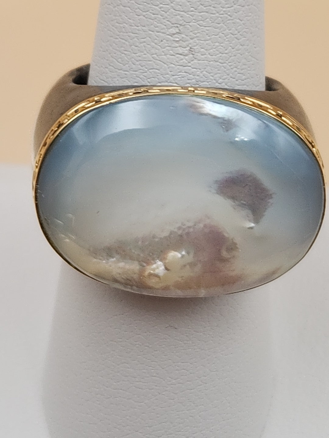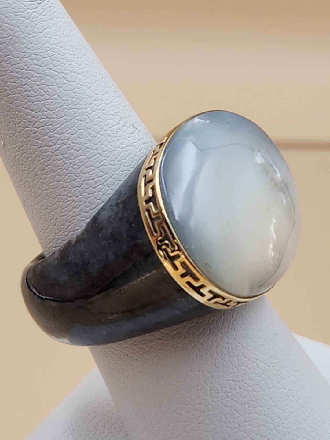 Viennese Mother Of Pearl/14k Gold/Larkavite Stone Ring Size 9